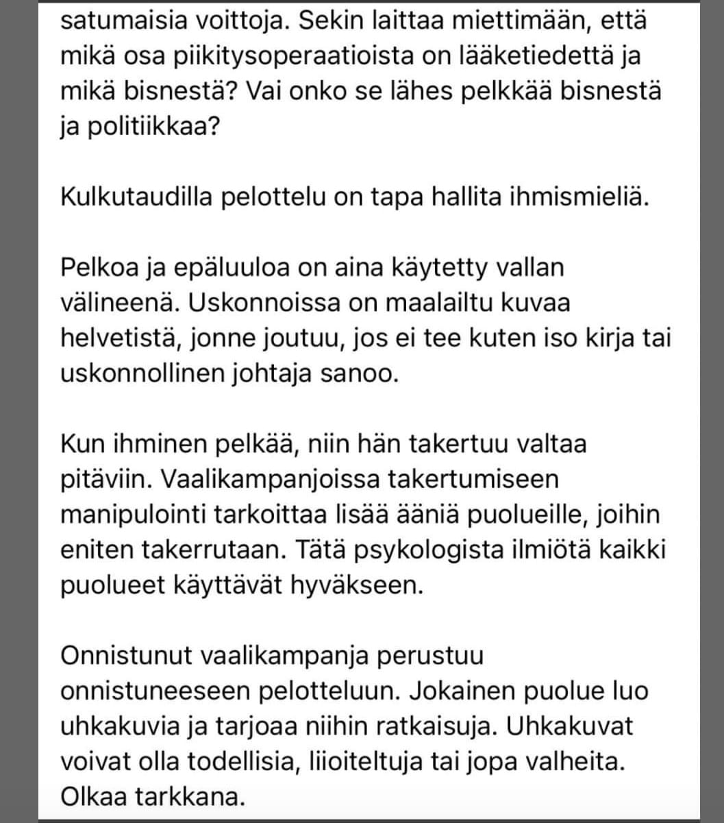 Kansanedustaja on selkeästi havainnut miten poliittista peliä pelataan.